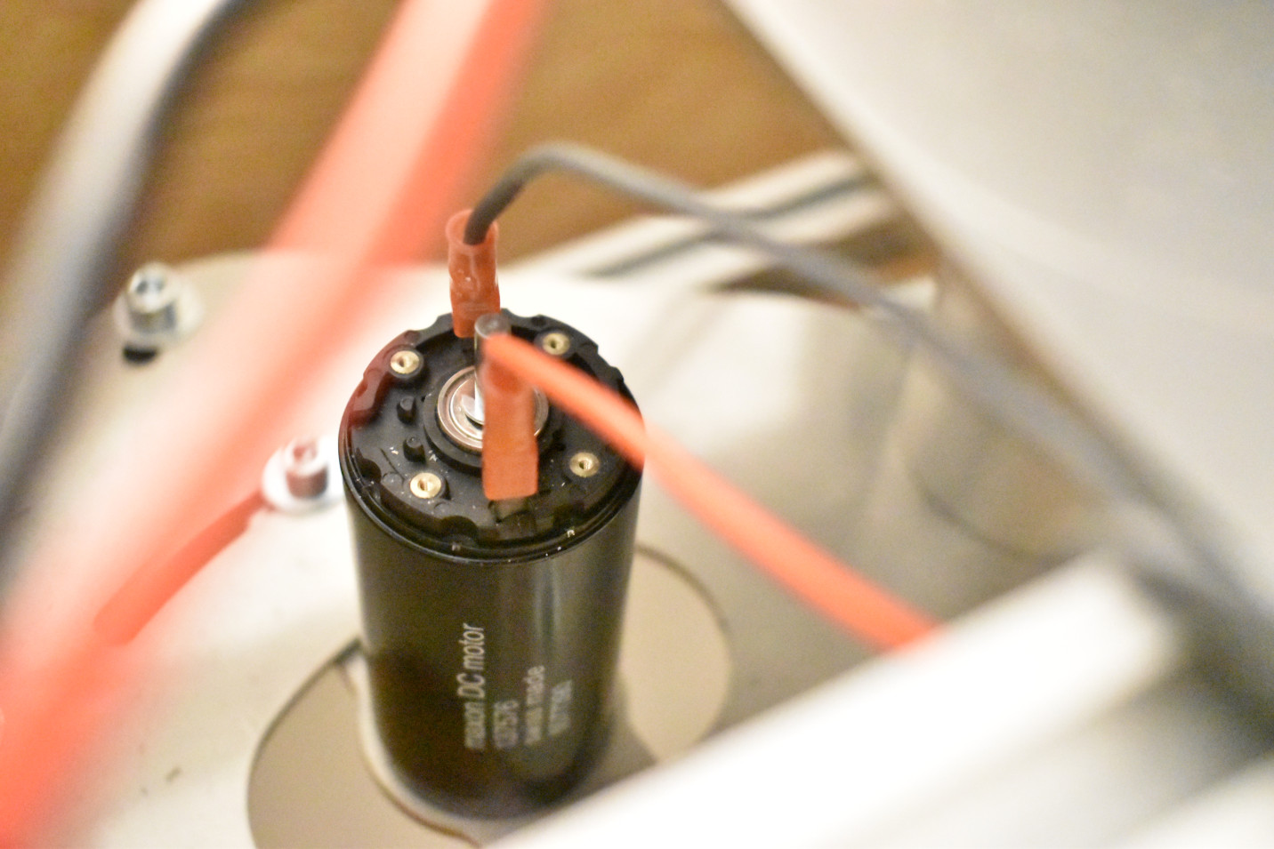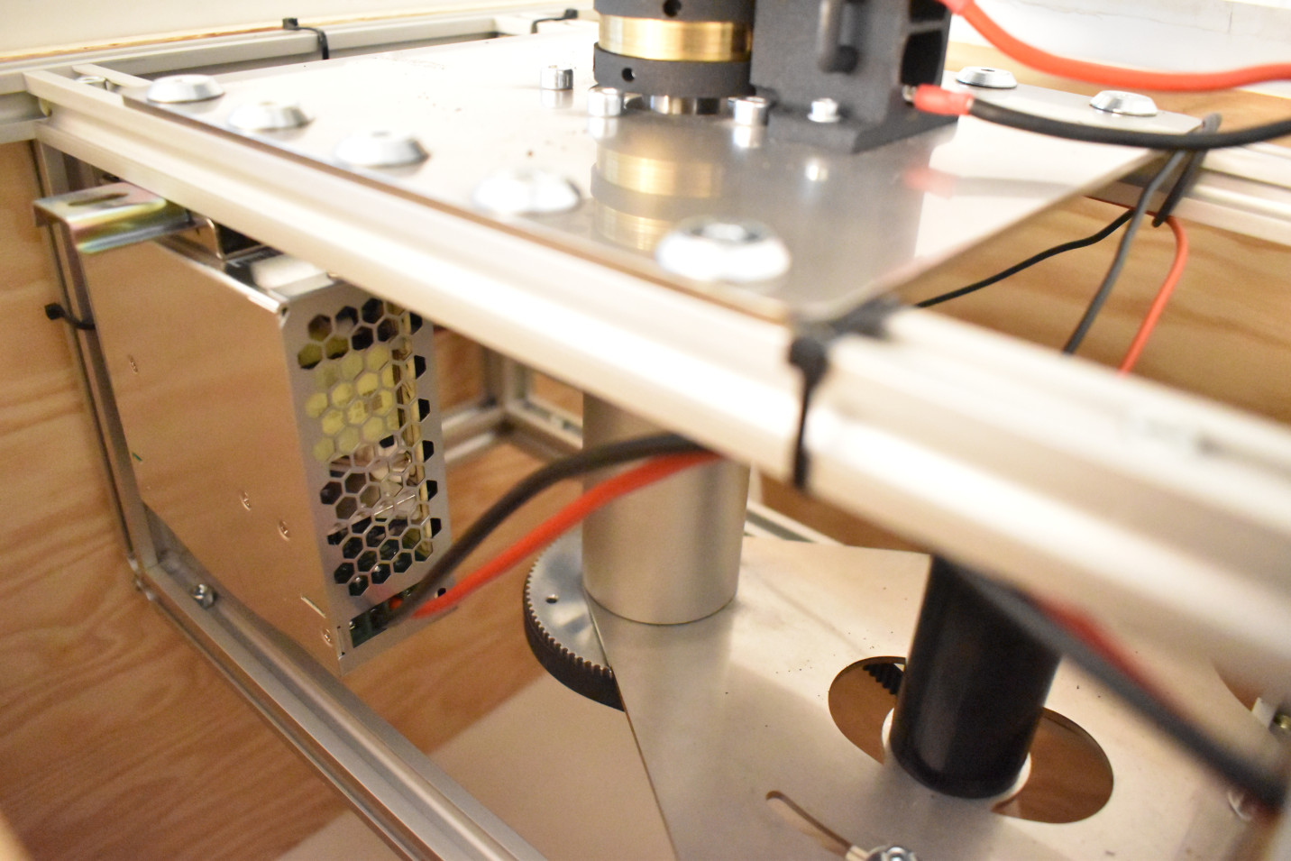 Der 3D-gedruckte Rotor trägt die LED-Halbbögen sowie die Control- und Power-PCBs. Die Energieübertragung erfolgt über Schleifringe, während ein DC-Motor den Rotor mit 750 U/min antreibt. Dies ermöglicht eine Bildwiederholrate von 25 FPS bei zwei Halbbildern.
